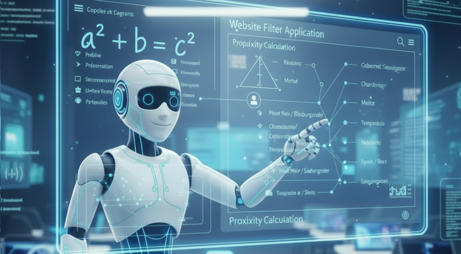 Wenn eine Kundin sagt „Ich mag Merlot“, dann sucht das System alle Weine, die in der Nähe der Merlot-Position liegen. Das Prinzip ist dasselbe wie bei Google Maps: Wenn Sie nach „Cafés in meiner Nähe“ suchen, zeigt Ihnen die App zuerst das Café 50 Meter entfernt, dann das 200 Meter entfernte – und erst ganz am Schluss das 5 Kilometer entfernte.